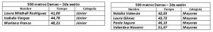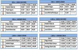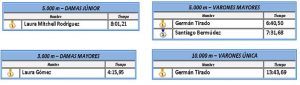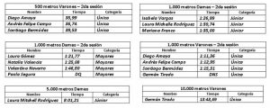 Laura Mitchell consiguió dos plusmarcas de la categoría júnior al tener los mejores registros en los 500 metros <41,80> y en los 5.000 metros <8:0121>. Entre tanto, en la categoría mayores, Germán Tirado se encargó de mejorar su marca personal en los 10.000 metros y de paso impuso el récord nacional <13:43,69>.